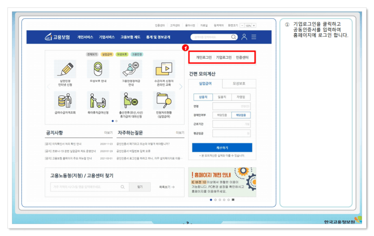 먼저, 고용보험 사이트에 접속하신 후 로그인을 합니다.